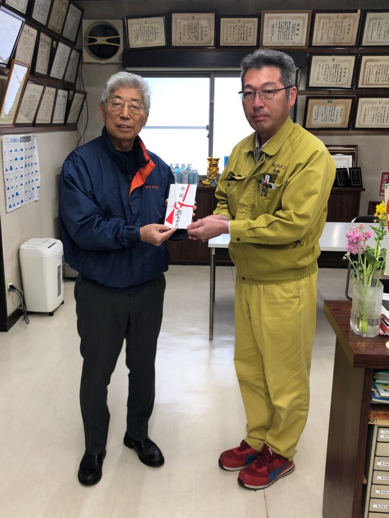 2021年3月 1級電気通信工事施工管理技士取得のお祝いを差し上げました。 2024 4/17 2020年12月 新築のお祝いをお渡ししました。 令和3年9月 新潟県知事より消防団協力事業所県知事表彰を受賞しました。 関連記事 令和元年8月3日 安全大会にて優秀な安全標語にたいして表彰しました。 0083年8月3日 平成30年8月4日 永年勤続者へ記念品贈呈 2018年8月4日 資格取得者に報奨金を贈呈しました 2018年12月16日 平成31年4月 茨城県大洗町近辺に研修旅行に行きました。 2019年4月17日 令和元年5月 結婚のお祝いを会社と親睦会から差し上げました。 2019年5月17日 令和元年忘年会 永年勤続者表彰 2019年12月17日 出産祝いをお渡ししました。 2020年1月22日 出産祝いをお渡ししました。 2020年5月20日